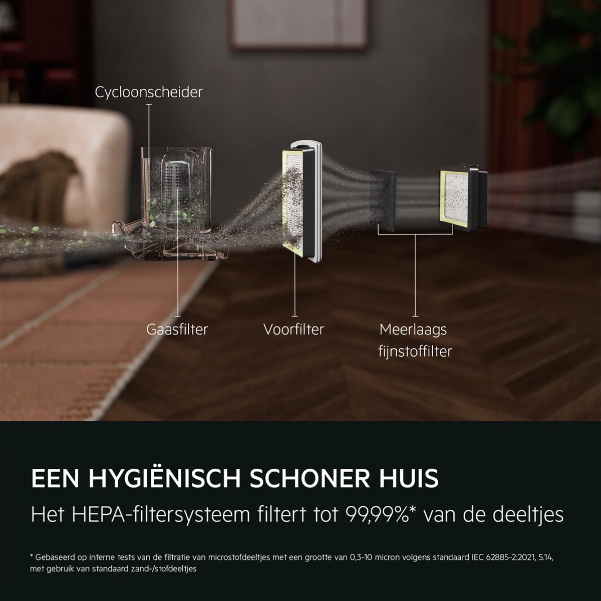 - Filter: Wasbaar Hygiënefilter (HEPA 12/13-klasse)