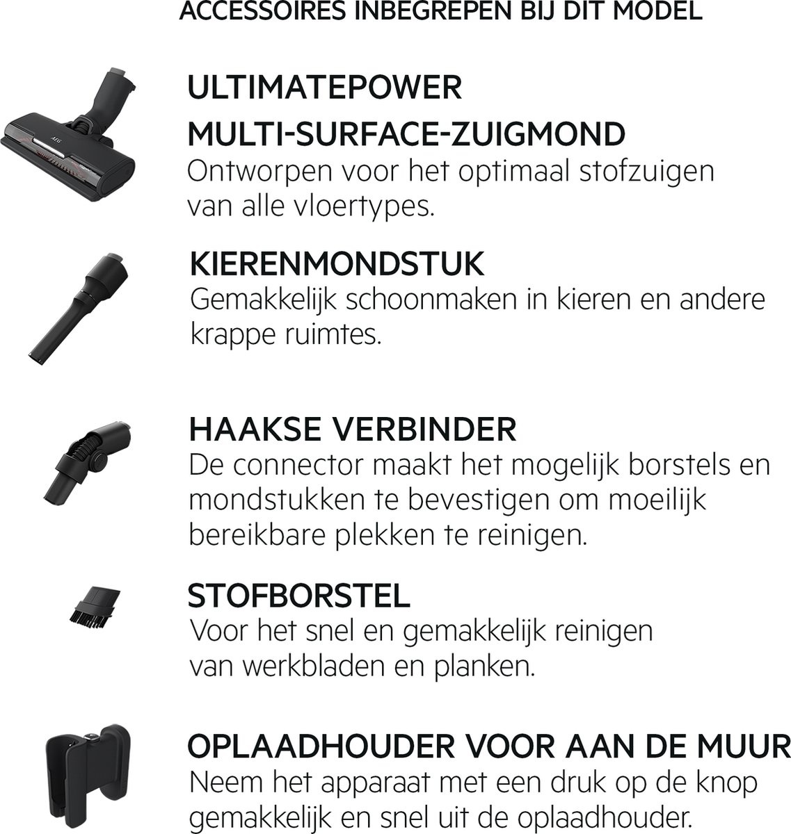 - Vederlicht en Krachtig: Met slechts **2,2 kg** is dit een van de lichtste steelstofzuigers, maar levert hij de beste prestaties in zijn klasse.