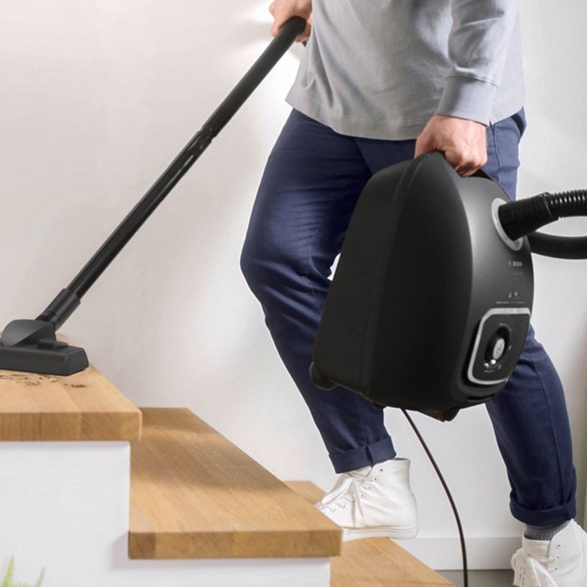 Geen gedoe meer met het constant wisselen van stopcontact. Dankzij de ruime actieradius van 11 meter reinigt u moeiteloos grotere oppervlakken en meerdere kamers in één keer. De vier soepele zwenkwielen zorgen voor een uitstekende wendbaarheid, terwijl de telescopische buis en ergonomische handgreep het comfort tijdens het stofzuigen verhogen.