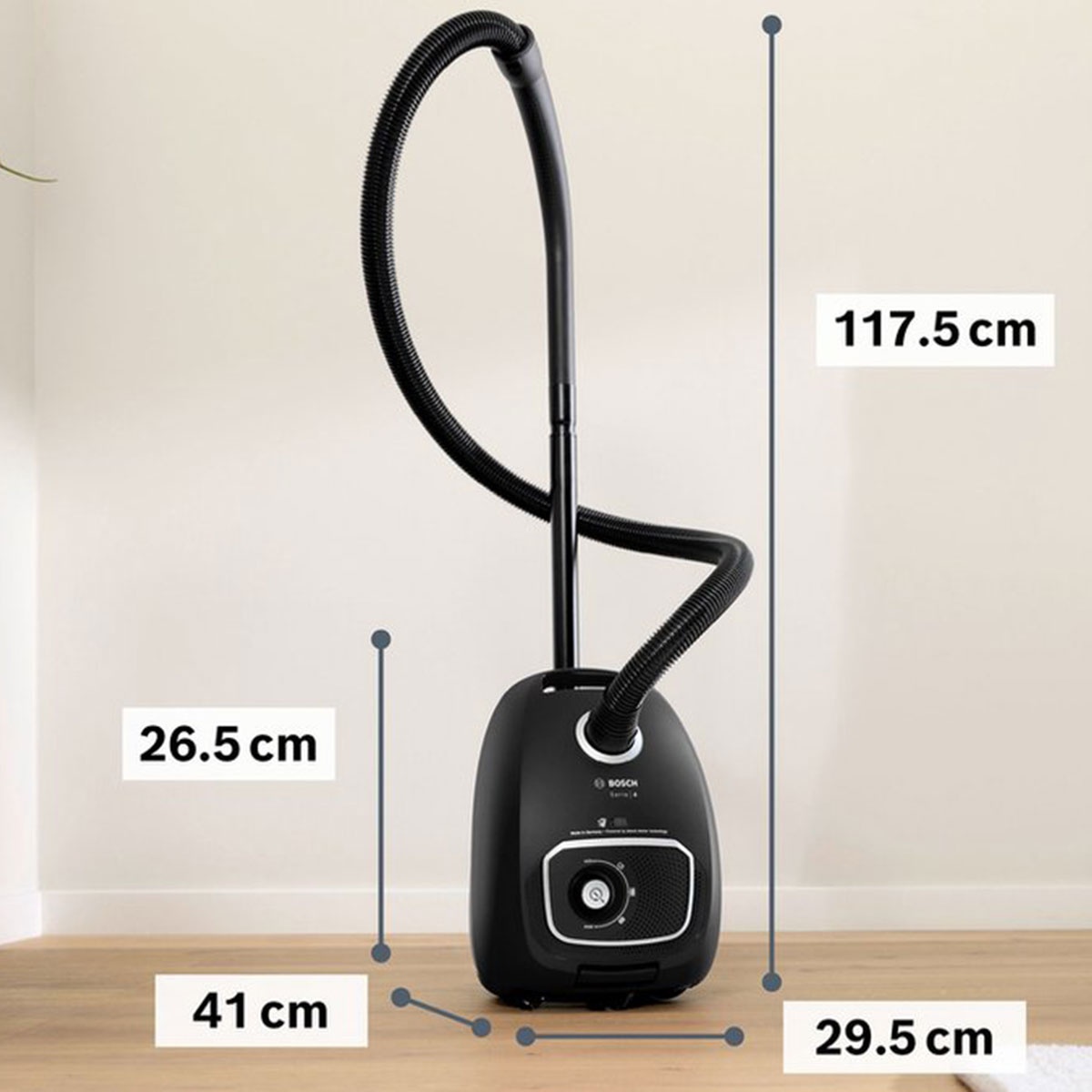 De Bosch BGB41BA1 Serie 4 staat garant voor krachtige schoonmaakprestaties dankzij de hoogwaardige Bosch motortechnologie, volledig ontwikkeld in Duitsland. Met een indrukwekkende luchtstroom tot 150 km/u in de zuigmond bereikt deze stofzuiger een stofopname van 99.9%.