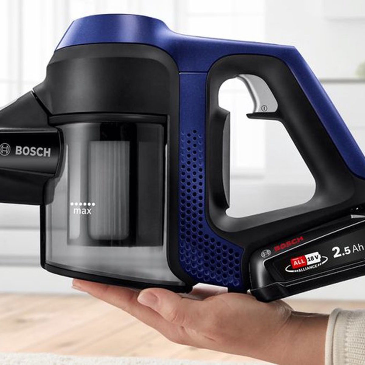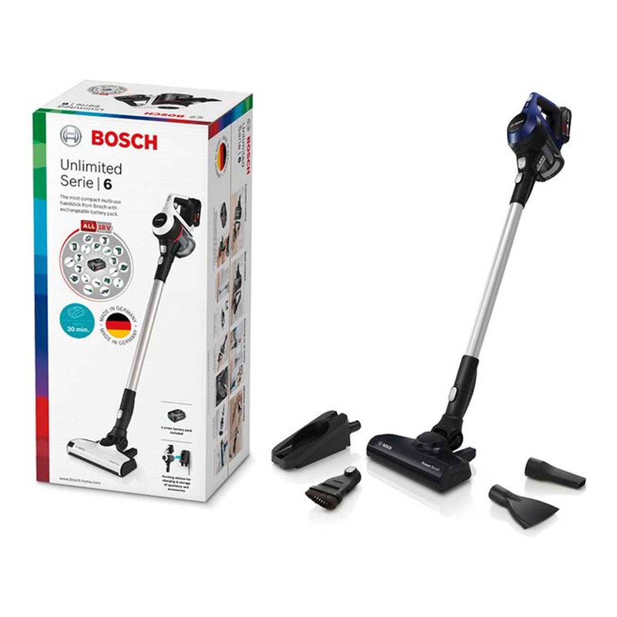 Compacte en veelzijdige snoerloze steelstofzuiger uit de Bosch Unlimited 6 serie. Dankzij het lichte ontwerp en de uitwisselbare 18V accu reinigt u moeiteloos alles van vloer tot plafond.