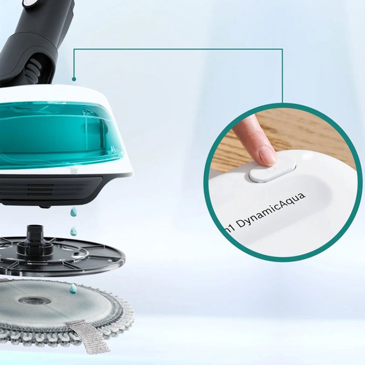 - 2-in-1 DynamicAqua Mop: Stofzuigt en dweilt tegelijkertijd met twee actief roterende pads voor een vlekkeloze reiniging.