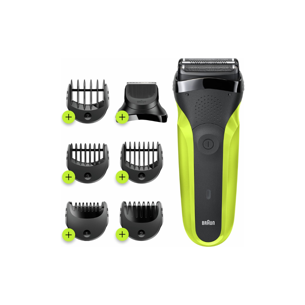 - Bevat 3-Flex opzetstuk voor efficiëntie en huidcomfort, één baardtrimmer en vijf kammen voor stoppels en baarden (1-7 mm)
