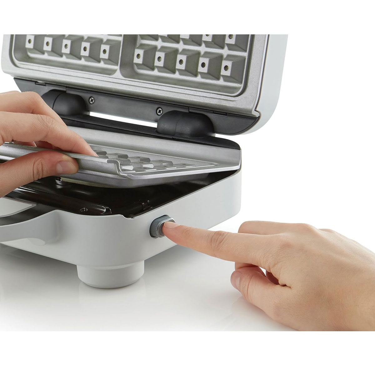 - Gelijkmatig Resultaat: De voorgevormde platen en 850W vermogen zorgen voor perfect goudbruine, gelijkmatig gebruinde wafels.