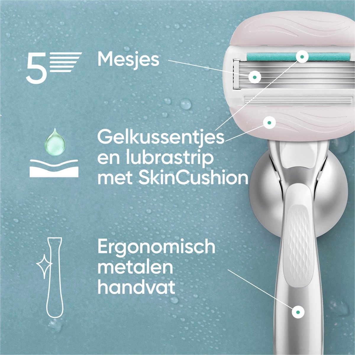 - Kenmerken: 5 mesjes, SkinCushion, Aloë Vera