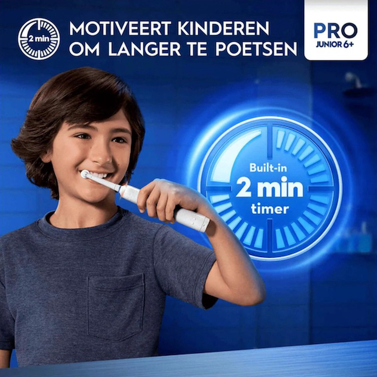 - PRO-Timer: Helpt kinderen om de aanbevolen poetstijd van 2 minuten aan te houden.