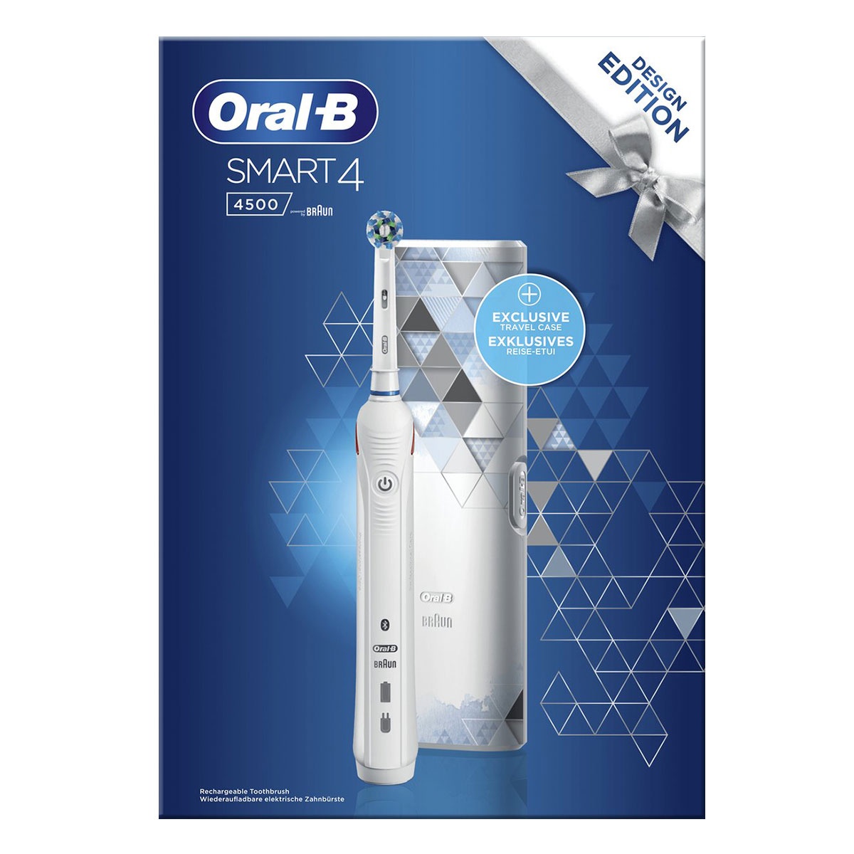 De Oral-B Smart 4 4500 is een intelligente elektrische tandenborstel die verbindt met de Oral-B app voor realtime coaching. Met 3D-reiniging, poetsdruksensor en reisetui voor een superieure reiniging en gezonder tandvlees.