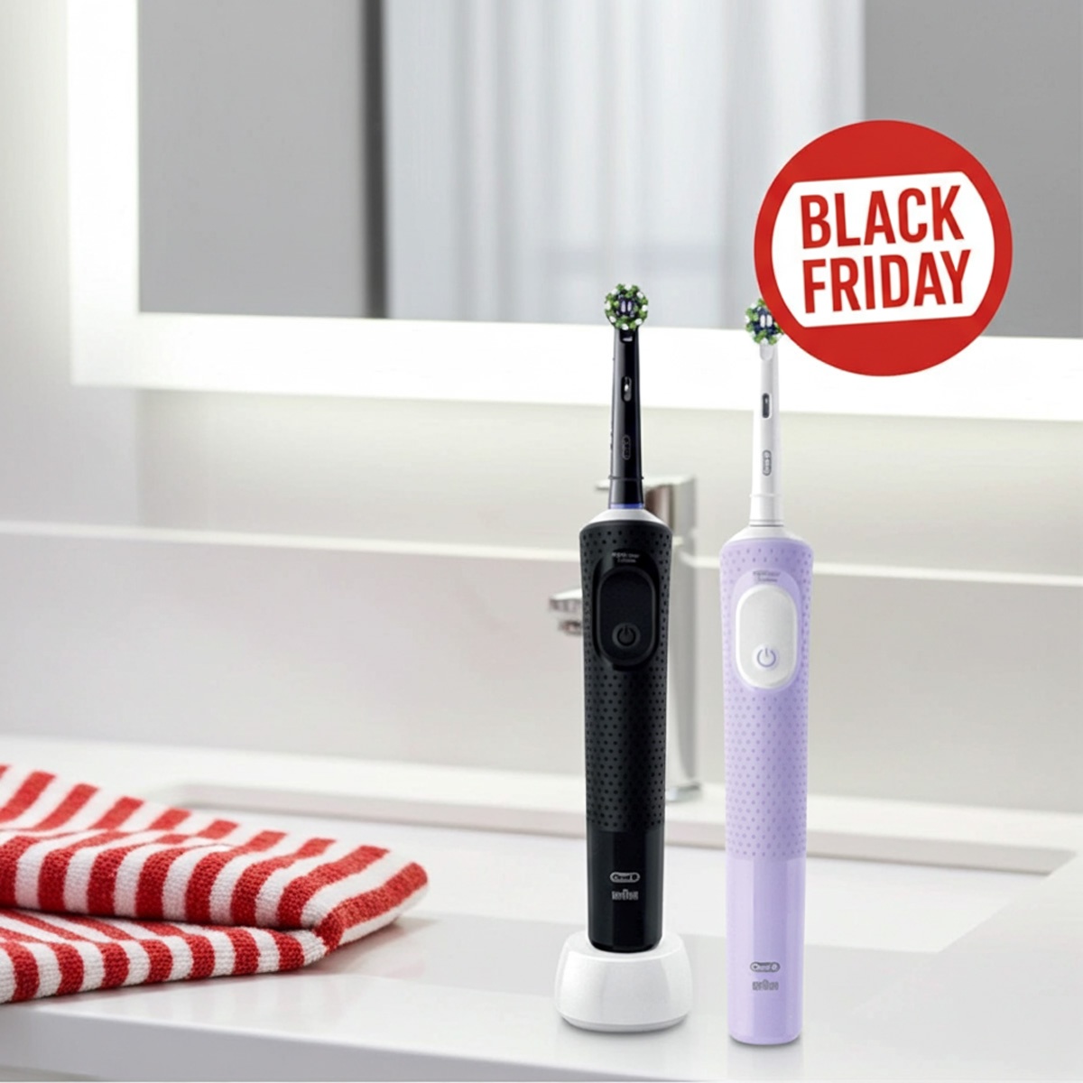 De Oral-B Vitality 100 Duo elektrische tandenborstel (Zwart & Lila Gift Edition) zorgt met 3 poetsstanden en 2D-poetstechnologie voor een gepersonaliseerde en effectieve reiniging.