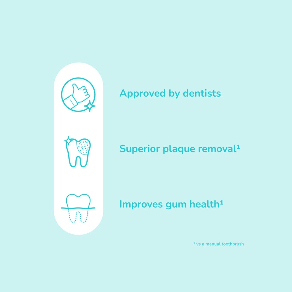 Laat u niet misleiden door het speelse ontwerp; de Sonic Lite is een serieuze tandenborstel. Voel de 35.000 sonische pulsaties per minuut aan het werk. Deze krachtige, maar zachte trillingen sturen microbelletjes diep tussen de tanden en langs de tandvleesrand, waardoor tandplak effectief wordt verwijderd. Bovendien is deze technologie zacht voor het gebit en daardoor ook perfect veilig te gebruiken bij beugels, vullingen of kronen, wat het een ideale keuze maakt voor tieners.