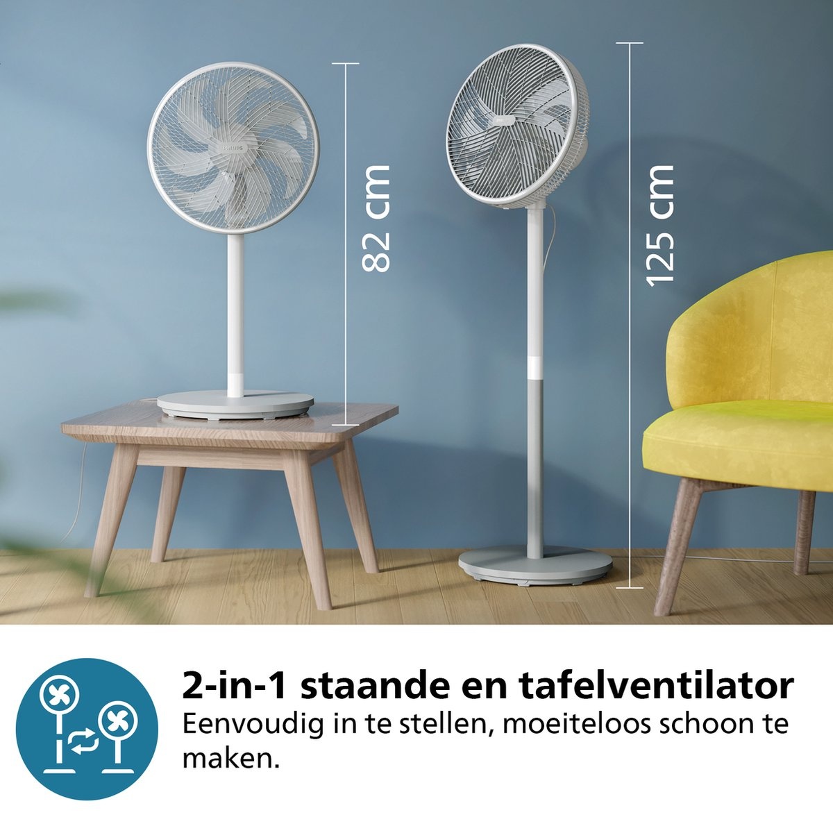 Philips 2000 Series CX2550/00 – Fluisterstille 2-in-1 Statief- en Tafelventilator