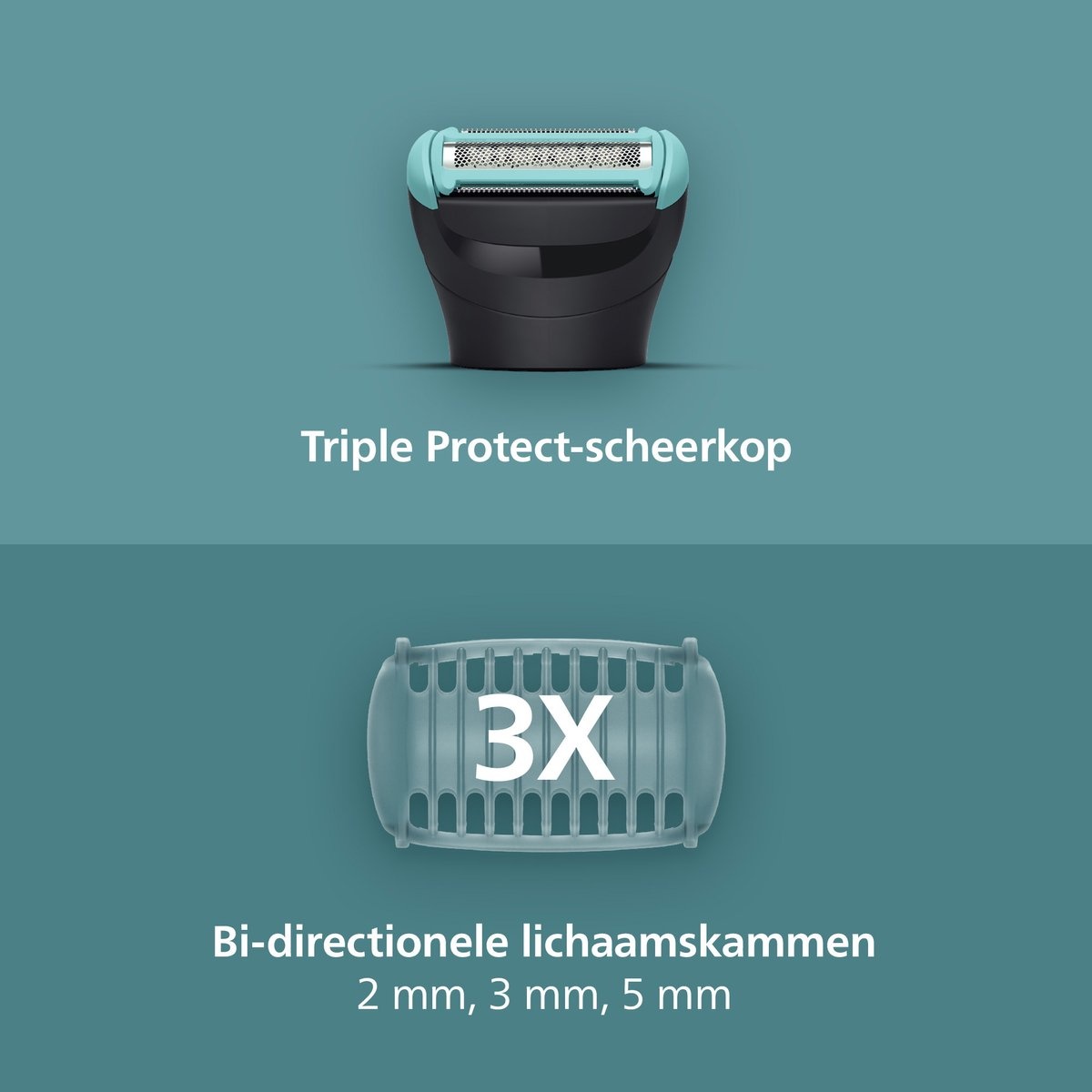- Voor het hele lichaam: Comfortabel scheren van rug, schouders, borst, oksels en schaamstreek.