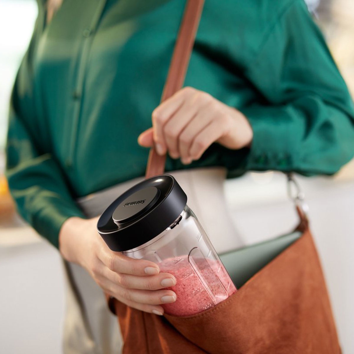 De blender wordt geleverd met een royale glazen kan met een effectieve capaciteit van 1,8 liter, ideaal voor het hele gezin. Heeft u weinig tijd? Maak uw smoothie dan direct klaar in een van de twee meegeleverde Tritan-tumblers. Deze bekers zijn 100% BPA-vrij, onbreekbaar en passen perfect in de meeste bekerhouders, zodat u uw gezonde levensstijl overal mee naartoe neemt.
