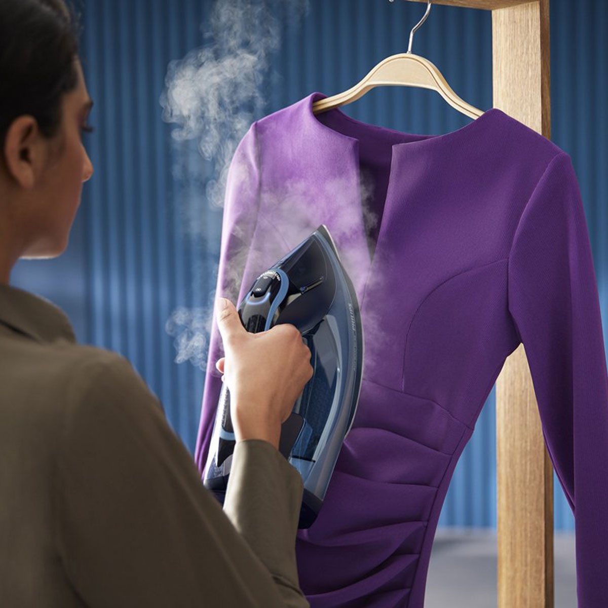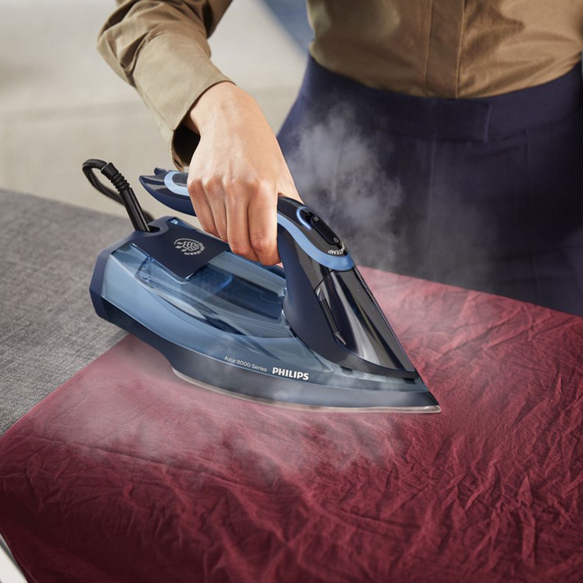 De Philips Azur 8000 is ontworpen voor comfort. Het extra lange snoer van 2,5 meter biedt optimale bewegingsvrijheid aan de strijkplank. Heeft u gordijnen of hangende colberts? Dankzij de krachtige verticale stoomfunctie frist u kleding eenvoudig op de hanger op. Het royale 350 ml waterreservoir zorgt er bovendien voor dat u langer kunt doorwerken zonder tussentijds bijvullen.