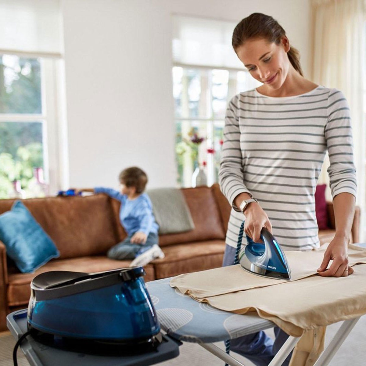 Heeft u een hekel aan strijken omdat het zoveel tijd en moeite kost? Ontdek een snellere, eenvoudigere en slimmere manier van kledingverzorging met de Philips PerfectCare Compact GC7846/80 stoomgenerator. Dit apparaat is een ware krachtpatser in een verrassend licht en compact formaat. Het is ontworpen om uw strijkwerk drastisch te versnellen en u de absolute gemoedsrust te geven dat u nooit meer een kledingstuk zult verbranden.