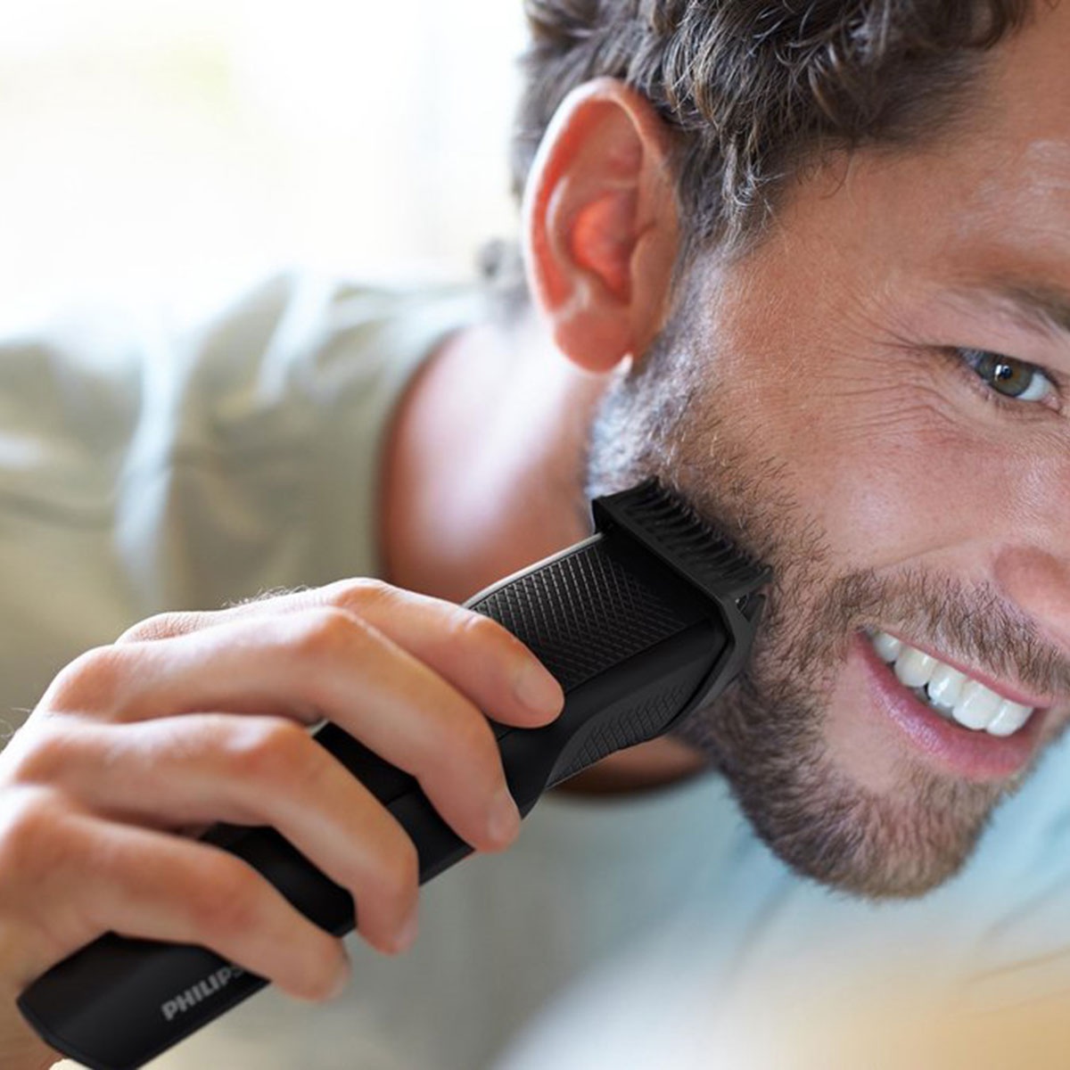 De Philips BT3234/15 maakt korte metten met ongelijkmatige baardgroei. Het innovatieve Lift & Trim-systeem tilt platliggende haren op en geleidt ze naar de zelfslijpende stalen mesjes. Hierdoor wordt elke haar op de juiste hoogte afgesneden, wat resulteert in een perfecte driedaagse stoppelbaard of een verzorgde korte baard in slechts één beweging.