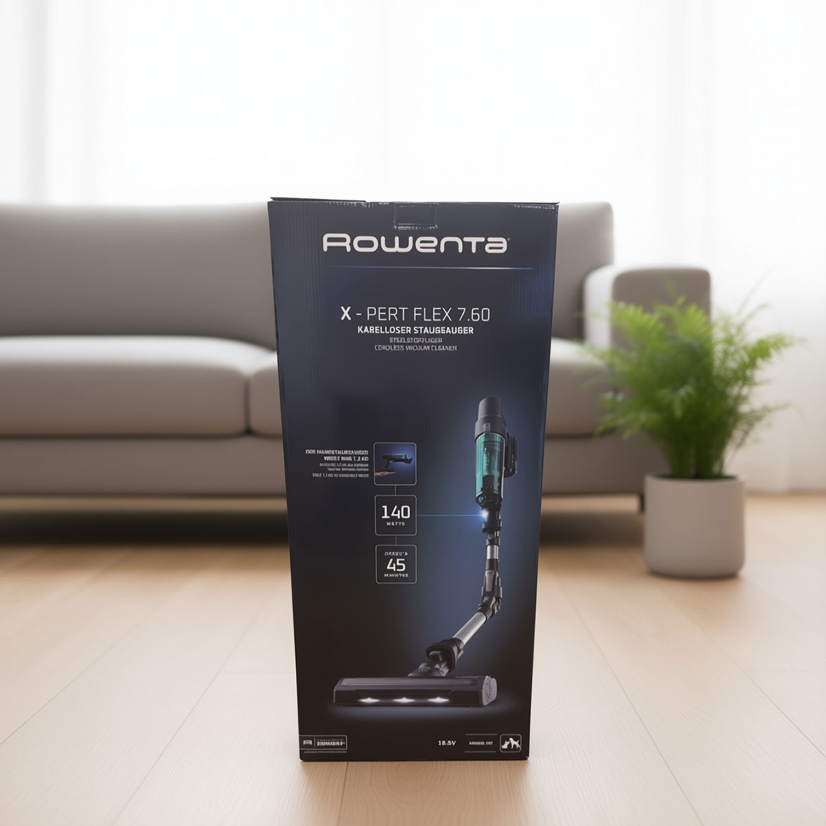 | Verpakkingsinhoud | 1x Handleiding 1x Rowenta X-Pert Flex 7.60 Steelstofzuiger 1x Gemotoriseerde zuigmond met LED 1x Mini-turbo borstel (Animal Care) 1x Meubelzuigmond & Kierenzuiger 1x Wandstation/Oplader |