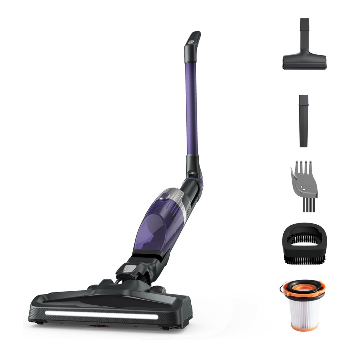 - LED-verlichting: Altijd zicht op stof en vuil dankzij de verlichte zuigmond.