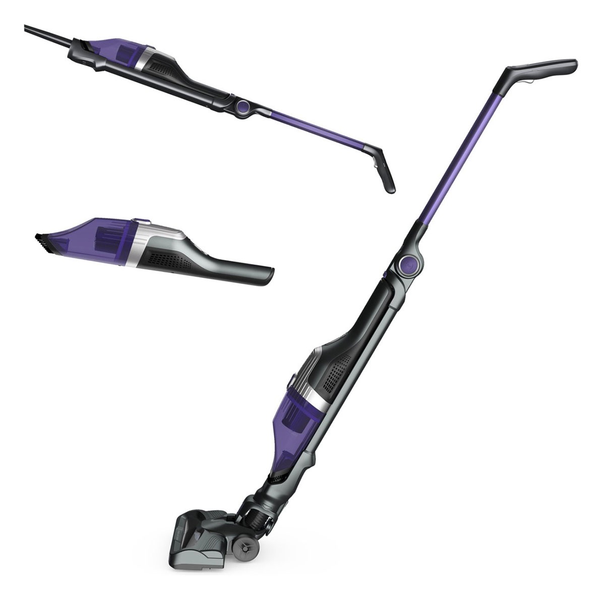 - 2-in-1 Functionaliteit: Snel te wisselen tussen steelstofzuiger en geïntegreerde kruimelzuiger.