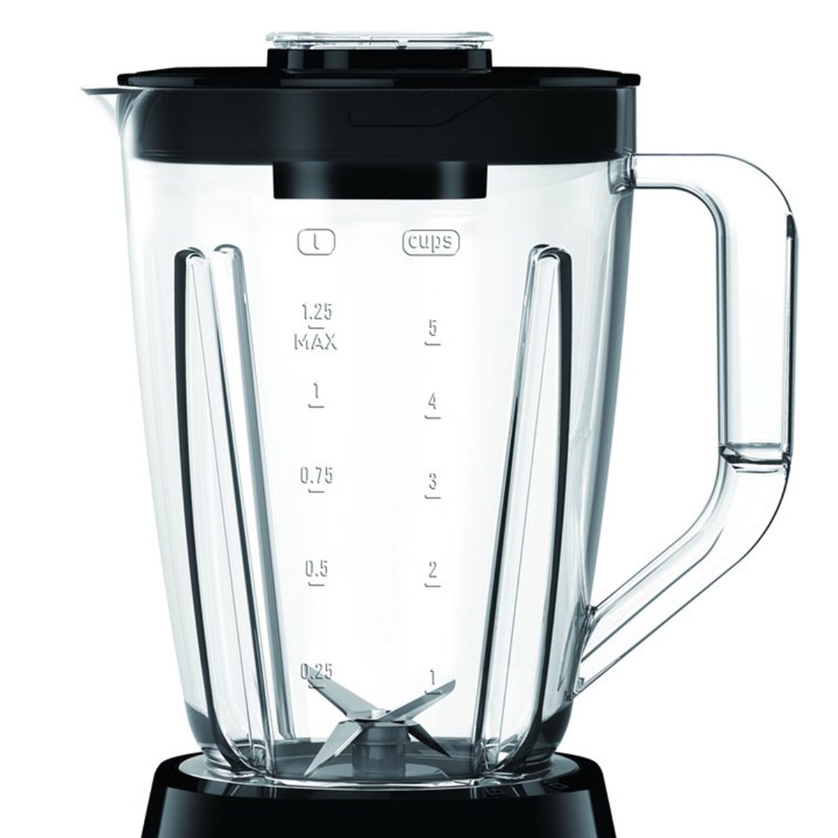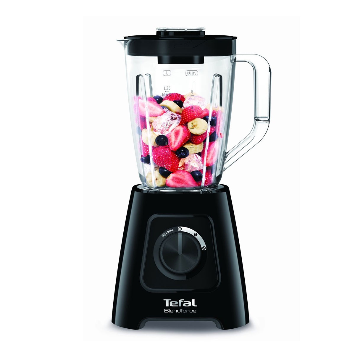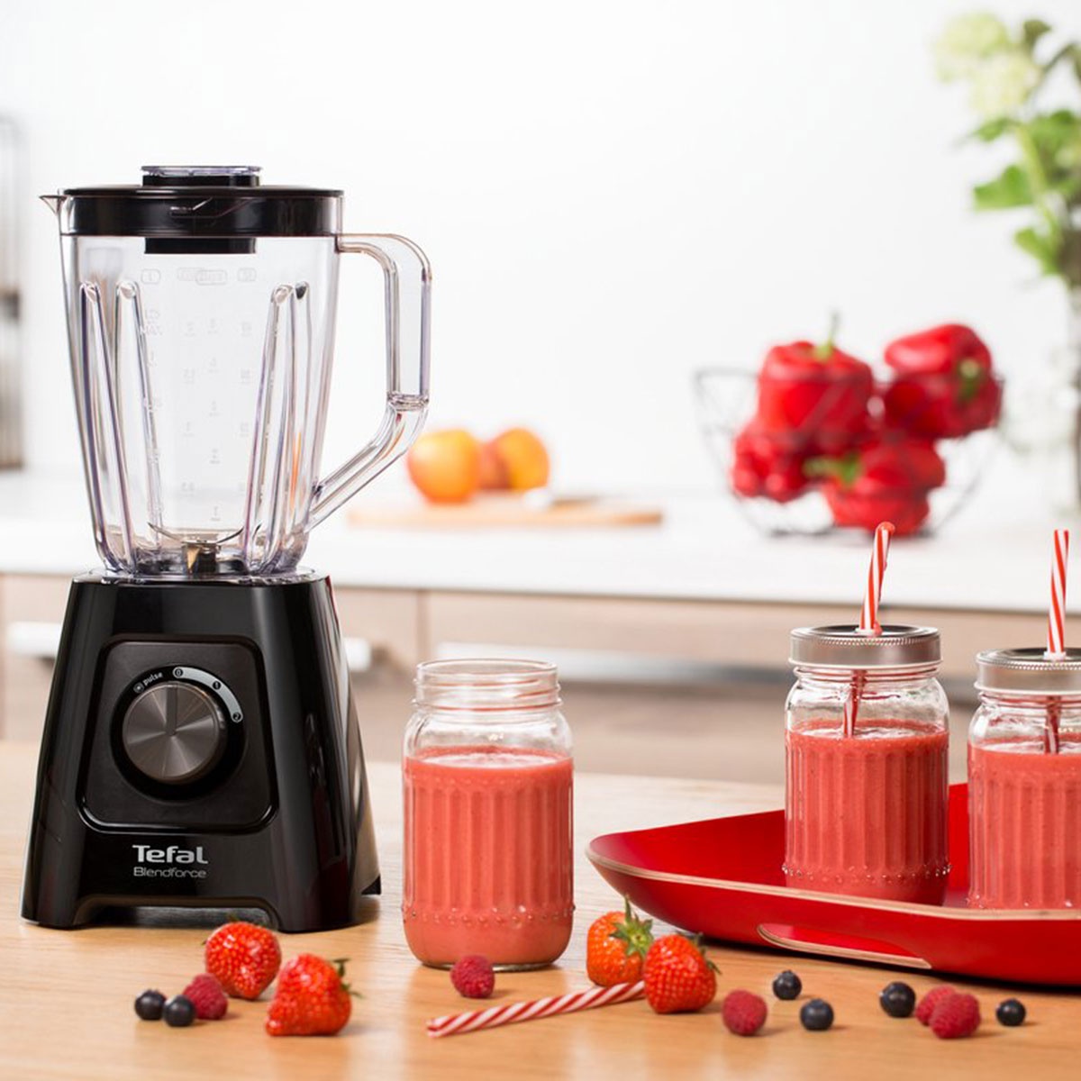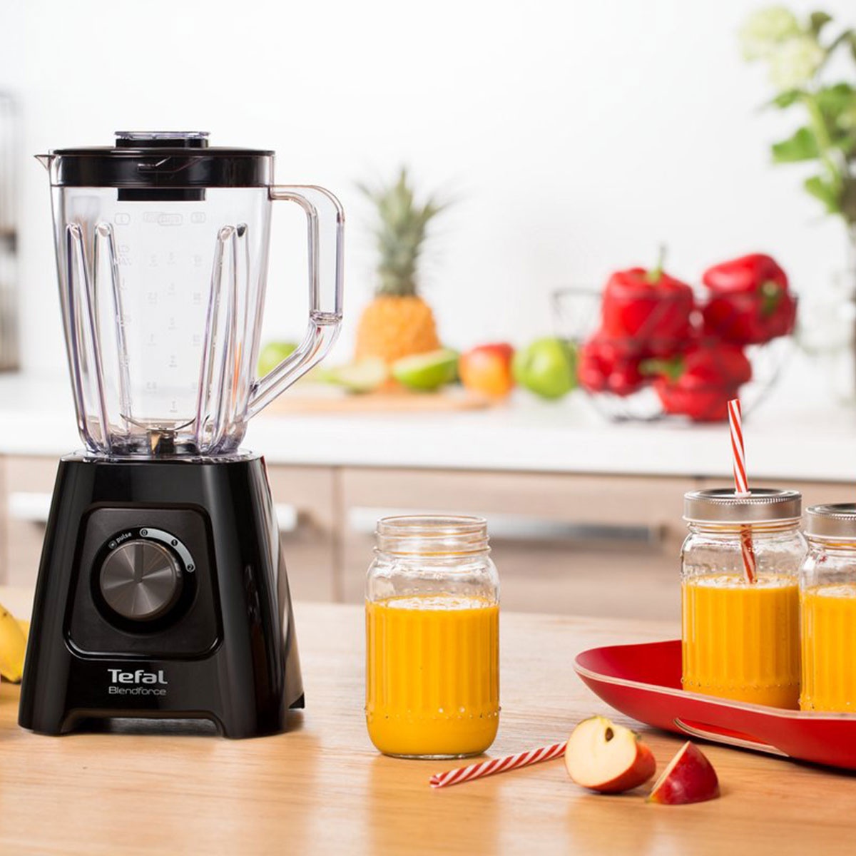 De Tefal BlendForce kan vrijwel alles verwerken, van groenten en fruit tot ijs malen. Het bedienen van de blender is eenvoudig en prettig: de geribbelde draaiknop laat je deze makkelijk draaien, het ergonomische handvat zorgt voor een natuurlijk, intuïtief gevoel en de zuignappen aan de onderzijde zorgen voor extra stabiliteit. De bruikbare capaciteit (1,25 L) van de kunststof kom is perfect voor elke gelegenheid; er is ook een vulstop inbegrepen voor extra precisie.