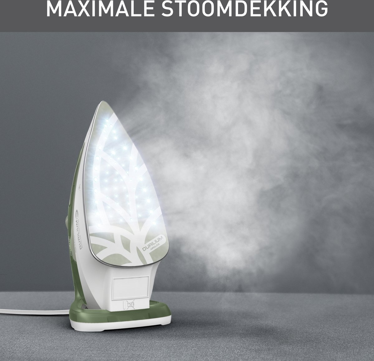 Voor de meest hardnekkige kreukels beschikt dit strijkijzer over een krachtige stoomstoot van 260 g/min. De constante stoomafgifte van 50 g/min zorgt voor een continu glad resultaat. Daarnaast is het strijkijzer voorzien van een verticale stoomfunctie, perfect voor het snel opfrissen van hangende kledingstukken of gordijnen.