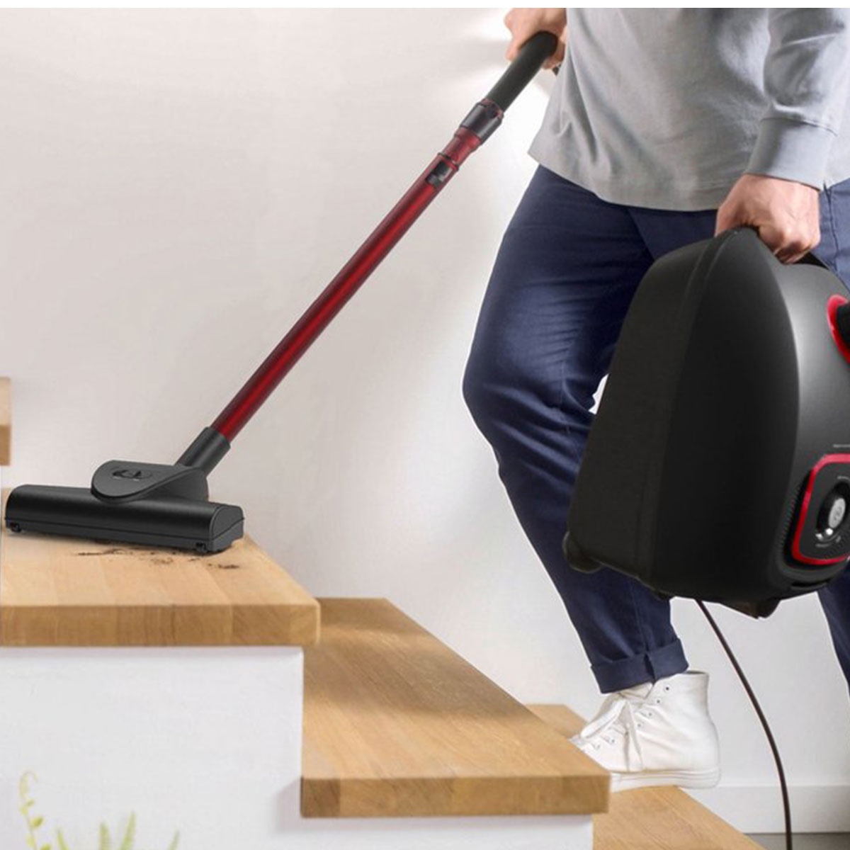 Met een actieradius van 11 meter, een automatisch oprolbaar snoer, vier zwenkwielen en een ergonomische handgreep is deze stofzuiger bijzonder gebruiksvriendelijk. Het geïntegreerde accessoirevak bevat een kierenzuigmond en meubelborstel, altijd binnen handbereik.