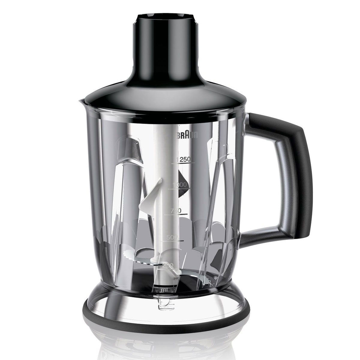 - Complete Veelzijdigheid: Deze uitgebreide set bevat alle accessoires die u nodig heeft: een hakmolen, ijsmes, pureestamper, garde en een maatbeker.