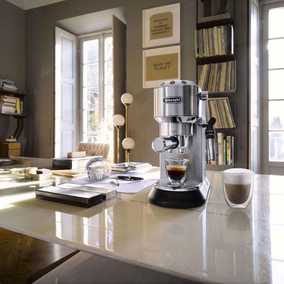 - Ultraslank en Stijlvol Design: Met een breedte van slechts 15 cm is de Dedica Style een van de meest compacte pistonmachines op de markt, een echte aanwinst voor uw aanrecht.
