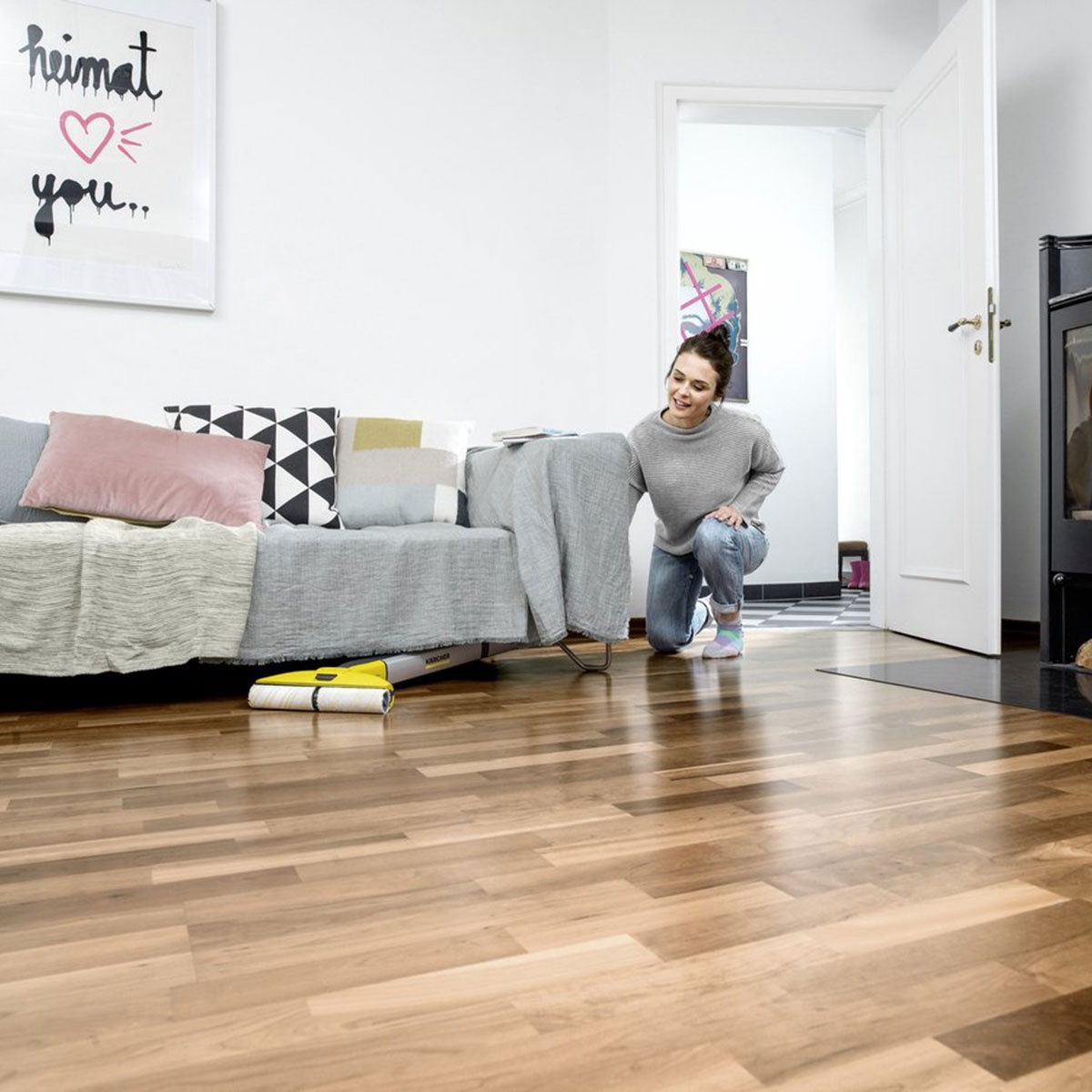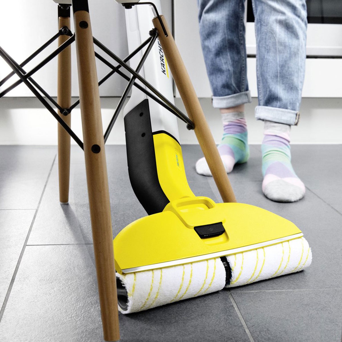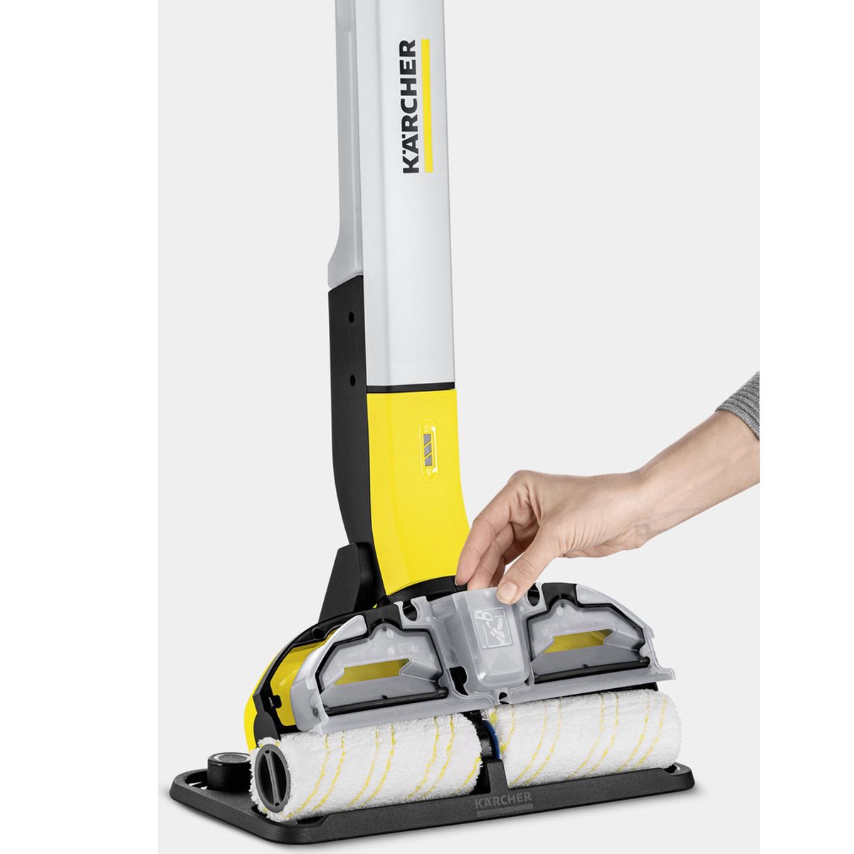 De microvezel rollers zijn eenvoudig te verwijderen en kunnen op 60°C in de wasmachine worden gewassen voor een hygiënisch resultaat. Gebruik voor het beste resultaat de originele Kärcher reinigingsmiddelen om de levensduur van uw vloeren en het apparaat te verlengen.