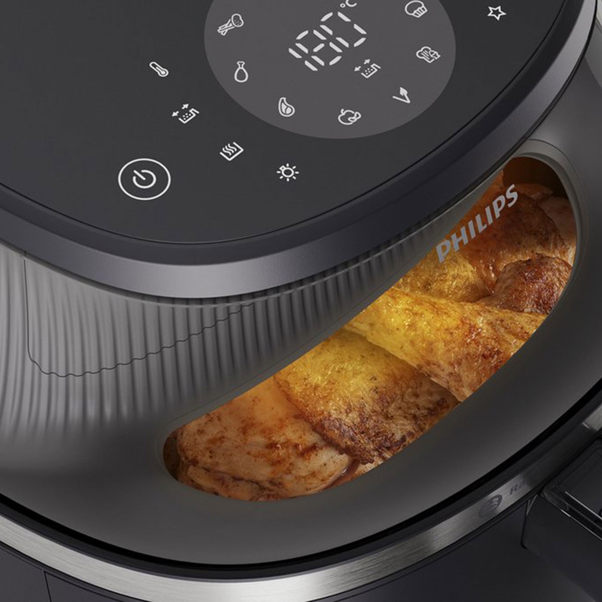 Via het geïntegreerde kijkvenster houd je het bereidingsproces nauwlettend in de gaten. Zo weet je precies wanneer je gerecht de ideale textuur en garing heeft bereikt.