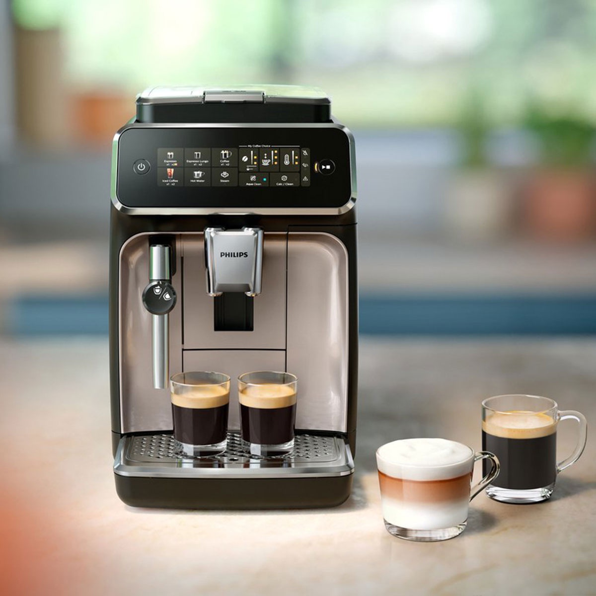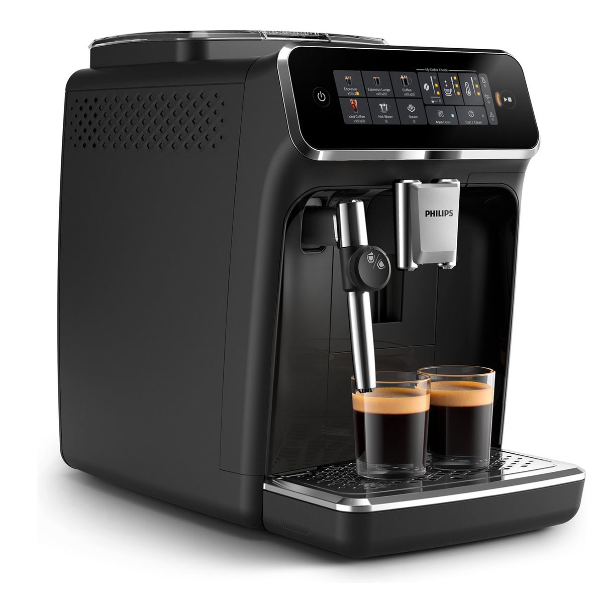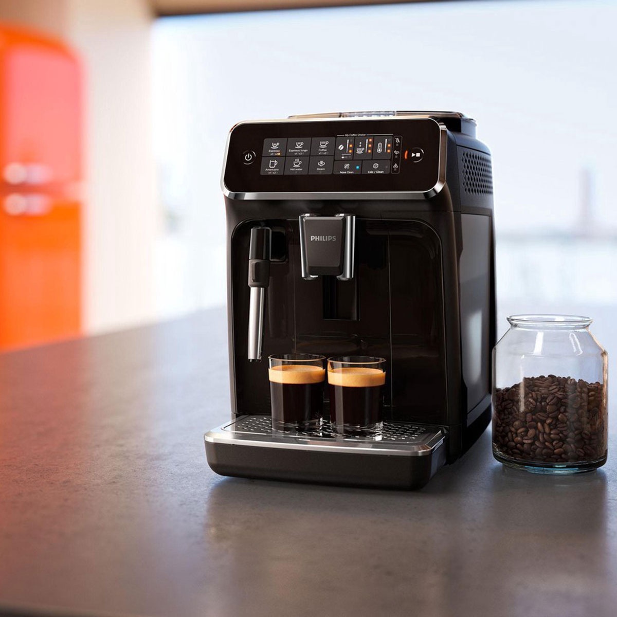 De Philips 3300 Series EP3321/40 is een stijlvolle, volautomatische espressomachine waarmee je eenvoudig tot 5 koffiespecialiteiten zet met één druk op de knop. Van espresso tot cappuccino en heet water voor thee – alles binnen handbereik dankzij het intuïtieve touchscreen display.