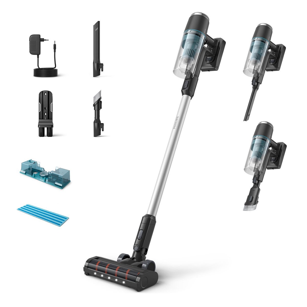 Tweedekans - Philips Steelstofzuiger XC3131/01 – Draadloos, Met Dweilfunctie en LED-verlichting