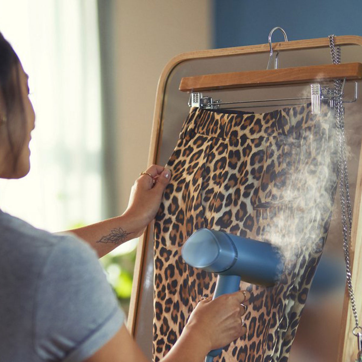 - Veilig voor Alle Stoffen: Gegarandeerd geen brandplekken. U kunt deze stomer veilig gebruiken op alle strijkbare stoffen, van delicate zijde tot stevig katoen.