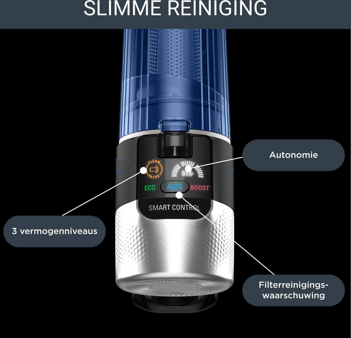 Of je nu snel kruimels van de vloer wilt verwijderen of een dieptereiniging wilt uitvoeren, deze stofzuiger past zich automatisch aan het vloertype aan. Dankzij de Aqua-technologie kun je tegelijk stofzuigen en dweilen, terwijl het Smart Control-display je realtime inzicht geeft in de status van het apparaat. Maak kennis met innovatie die écht het verschil maakt.