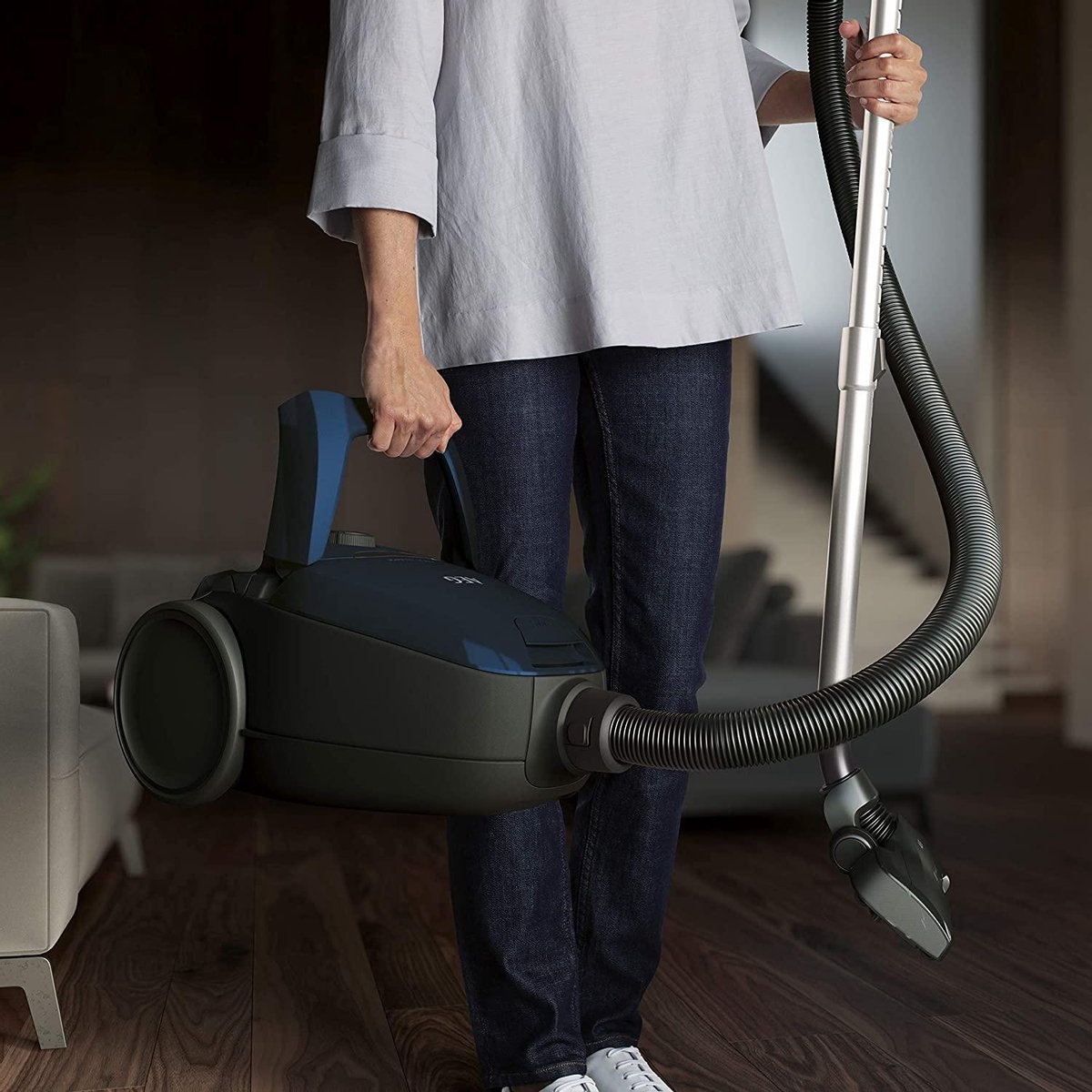 Dankzij de grote XL-wielen met rubberen afwerking glijdt de stofzuiger moeiteloos over uw vloeren zonder krassen achter te laten. Het gewicht is gelijkmatig verdeeld door de comfortabele, centraal geplaatste handgreep, waardoor de stofzuiger eenvoudig op te pakken en te dragen is. Met de meegeleverde 3-in-1 accessoire heeft u altijd een meubelborstel, kierenzuigmond en stofborstel binnen handbereik.